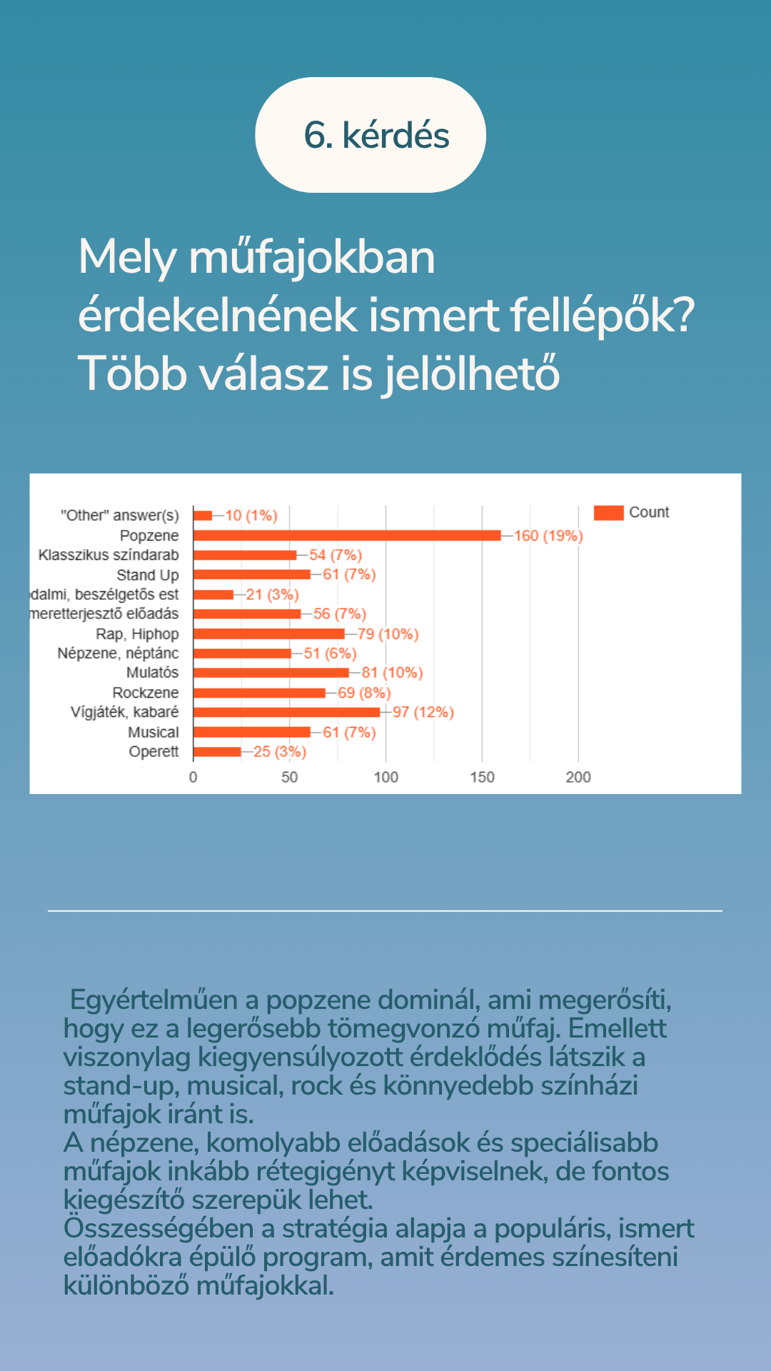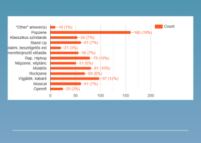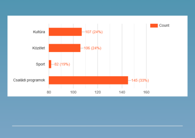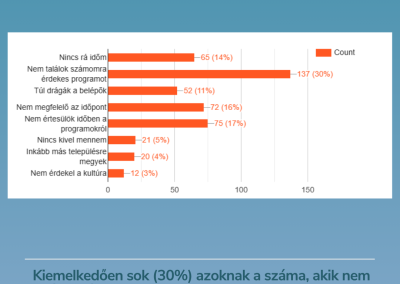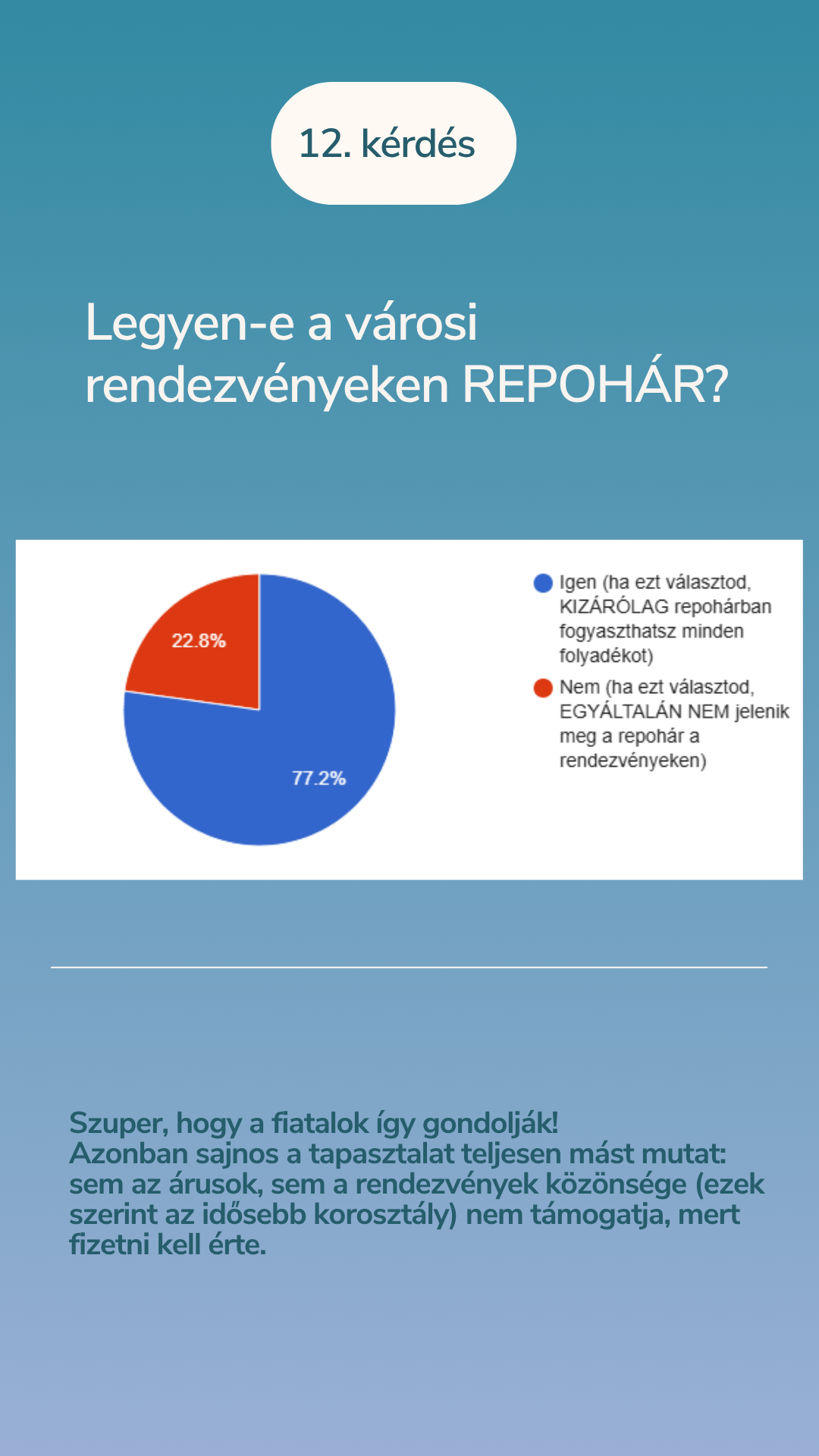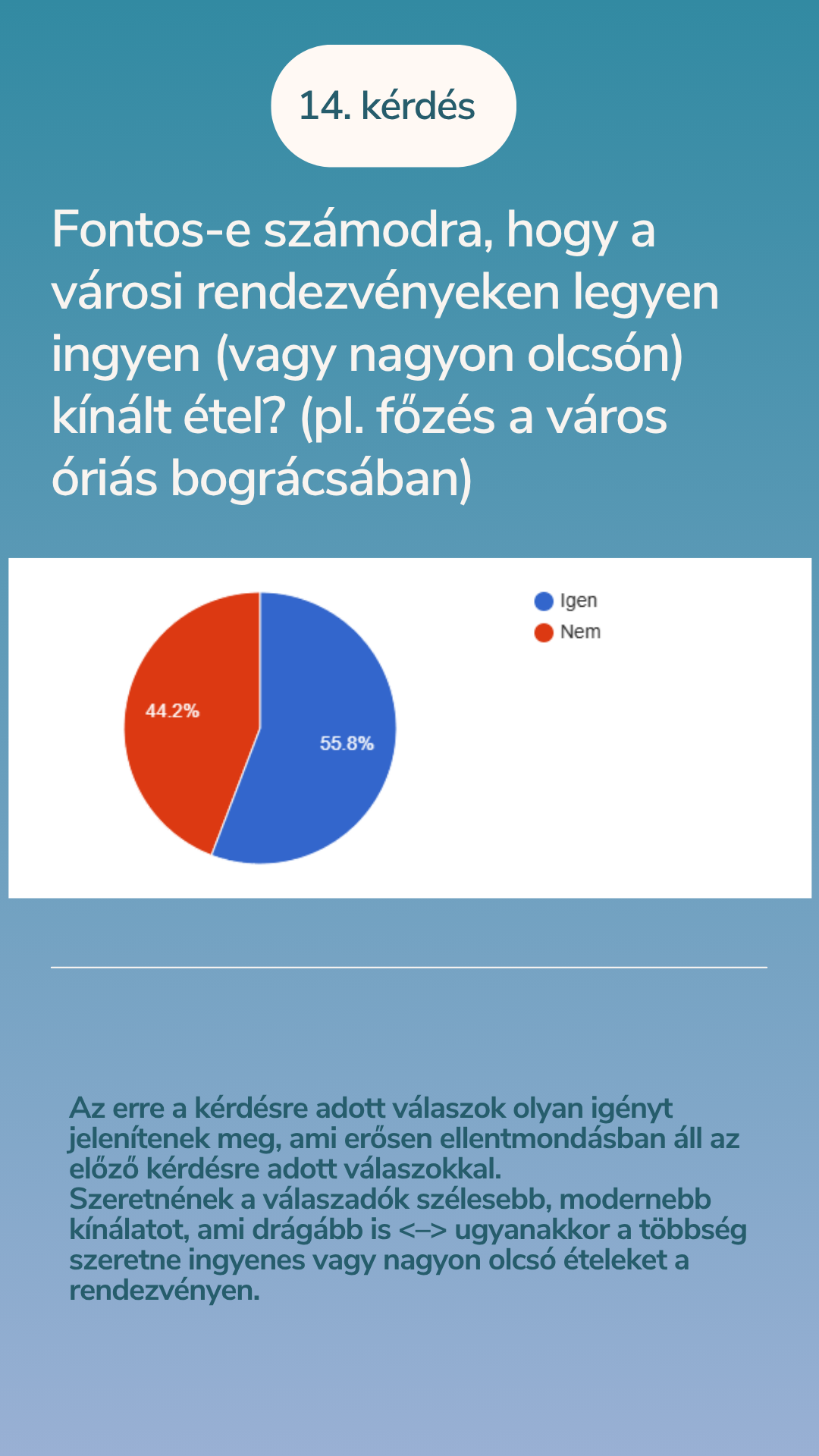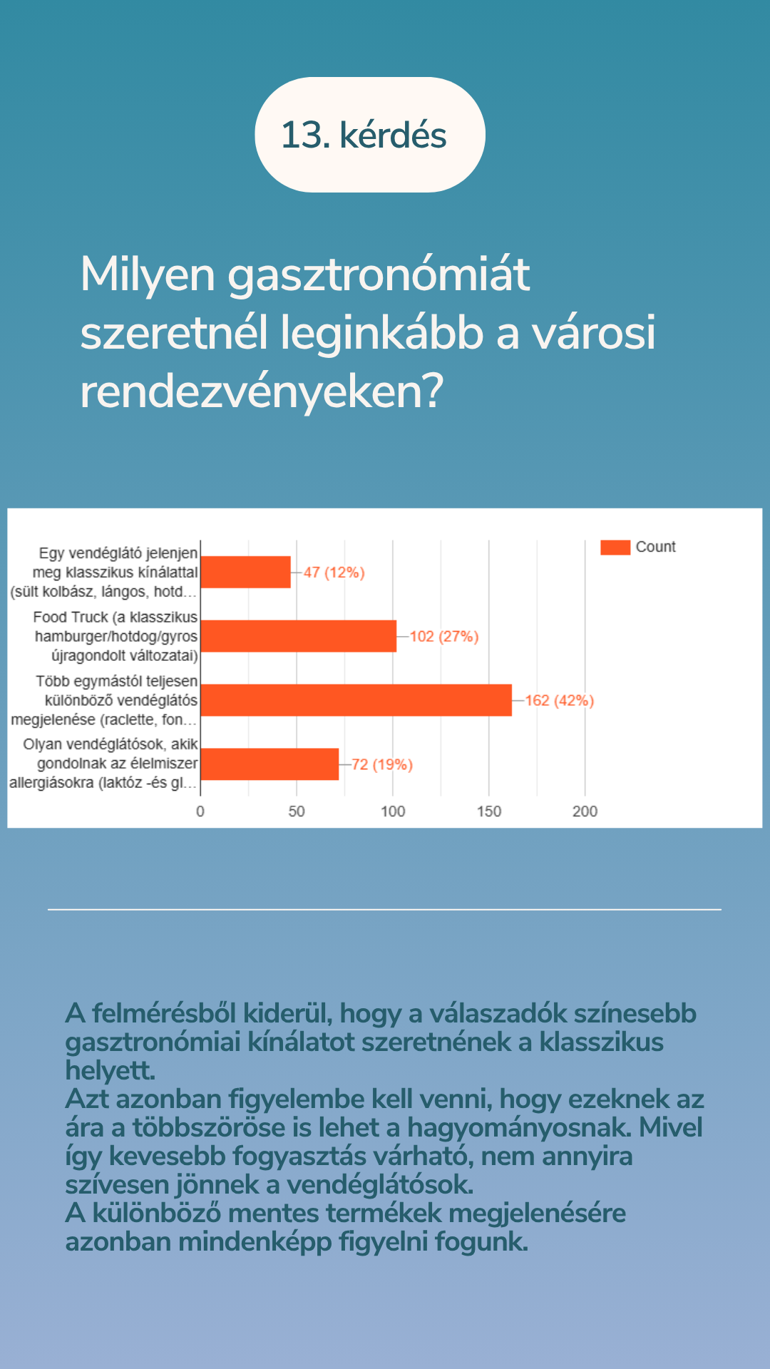 Szeretném itt is mindenkinek megköszönni, hogy a kérdőív kitöltésével segítette a munkákat. Igyekszünk megfelelni az elvárásoknak és úgy formálni a város kulturális programjait, hogy azok igazodjanak a fiatal korosztály jogos igényeihez is. Ezért itt is arra biztatnék mindenkit, hogy ne otthon, magában puffogjon, hanem jelezze, ha bármi nem jó, másra lenne igény vagy jobb ötlete van. Bátran lehet nyilvánosan is megírni a közösségi platformokon, csak taggeljék be a Művelődési Központ Facebook vagy Instagram oldalát, hogy eljusson hozzánk!