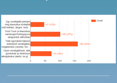 Mi egy kisváros vagyunk, kis rendezvényekkel (még az augusztus 20. is kicsinek számít). Az árusítók megjelenése sajnos nem úgy működik, hogy sorban állnak hozzánk. Ha felhívok egy népszerű árust (pl. Angyalkürtős) ez első kérdés az, hogy hány fős a rendezvény. Sajnos az 1000 fő nagyon kevés. És 1000 fő nem egész nap van, hanem csak a fő műsoridőben – pár órára. Pont ezért nem tudna nálunk működni egy olyan gasztroudvar, amit te szeretnél: egyszerűen nincs rá fizetőképes kereslet. A várudvarban pedig el sem férnének foodtrackek sajnos. Volt pár kisérletünk, hogy különlegességet kínáló vendéglátót hívtunk, de a visszhangja az volt, hogy nagyon drága. Ettől függetlenül igyekszünk „mindenmentes” szolgáltatókat is hívni, akikkel már az idei rendezvényeken is találkozhatsz.