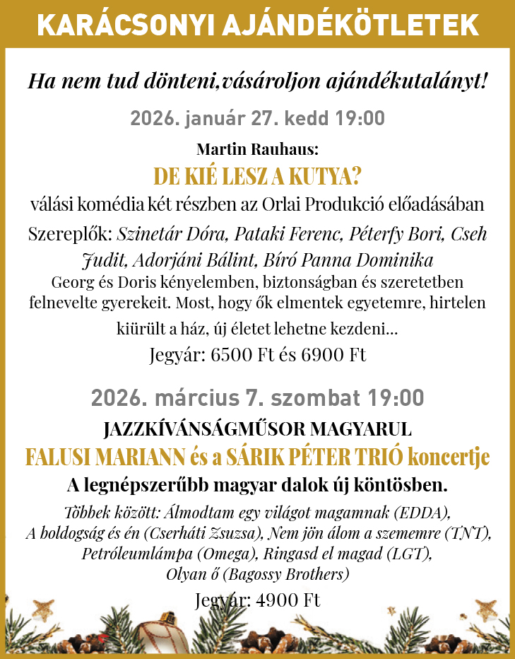 Az év első napjait ünnepi hangulatú koncerttel köszöntjük, amelyet a Solti Ifjúsági Fúvószenekar színes műsora tesz felejthetetlenné. A lendületes dallamok és a fiatal zenészek lelkes előadása igazi újévi élményt kínál.